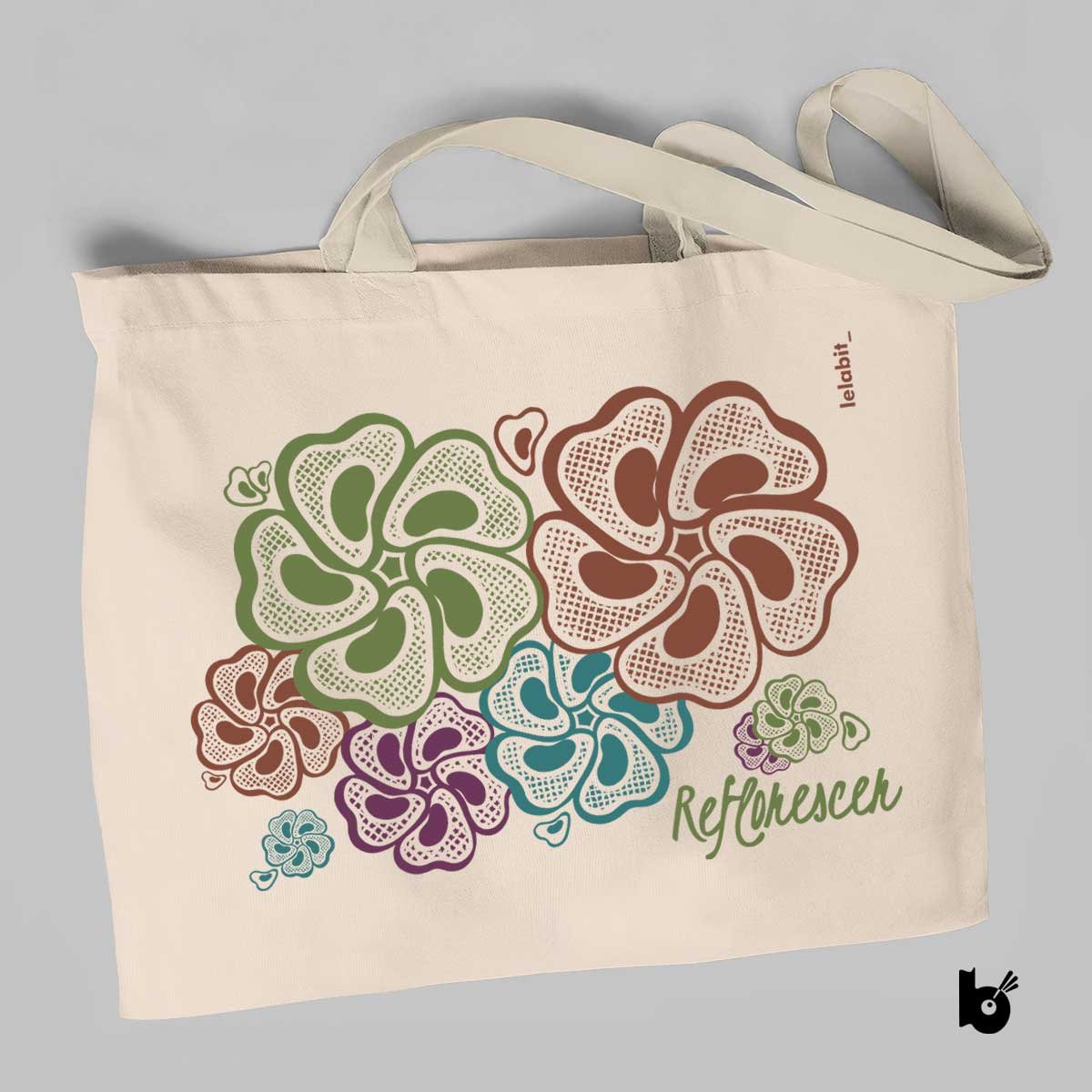 A Ecobag Reflorescer com estampa minimalista de flores interligadas é para quem aprecia leveza e frescor do estilo casual, aproveitando os ciclos de renovação com positividade. Um excelente acessório sustentável para levar os pertences para a prática de esportes, viagens de férias, praias ou fazer compras