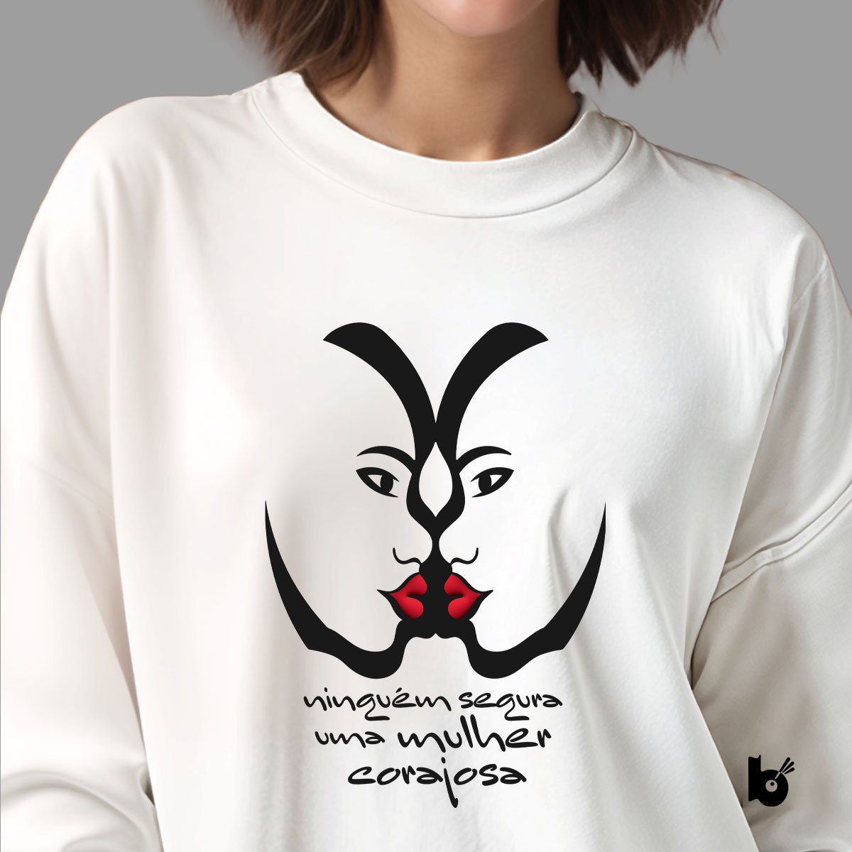 Não há barreira que detenha de uma mulher corajosa. Com um design minimalista e impactante, nossa estampa exclusiva com duas faces refletidas desenhada à mão captura a essência das mulheres corajosas que desafiam as expectativas e superaram as limitações    mesmo quando as circunstâncias são adversas. A frase "Ninguém Segura uma Mulher Corajosa" reafirma a resistência e autonomia do empoderamento feminino.